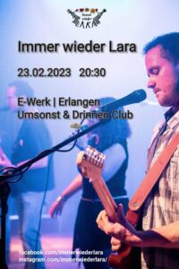 Am 23. Februar spielt Immer wieder Lara ab 20:30 Uhr im Club. Einlass beginnt um 18:00 Uhr, Eintritt ist frei.