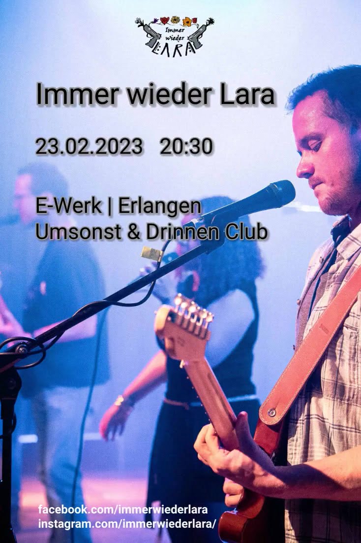 Das Umsonst & Draußen Festival auf der Jahnwiese kehrt als Wild Tunes Festival 2023 nach Bamberg zurück. Und Immer Wieder Lara sind am Freitag 7. Juli ab 17:00 Uhr dabei! Näheres - insbesondere zum weiteren Lineup - wird demnächst hier veröffentlicht: https://www.bambergerfestivals.de/event/wild-tunes-festival-2023/.